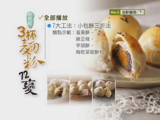 DVD12615--阿芳老師的廚房教室-3杯麵粉72變 DVD 第4集(不用磅秤之3杯麵粉──只要有量杯、量匙和麵粉 72道麵點輕鬆做)(DVD一片裝)